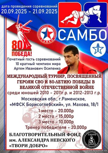 В дни с 20 по 21 сентября 2025 года в Московской области, г. Раменское, на базе «МФСК Борисоглебский», состоялся значимый Международный турнир, призванный почтить героев специальной военной операции и отметить 80-летие Победы в Великой Отечественной войне.